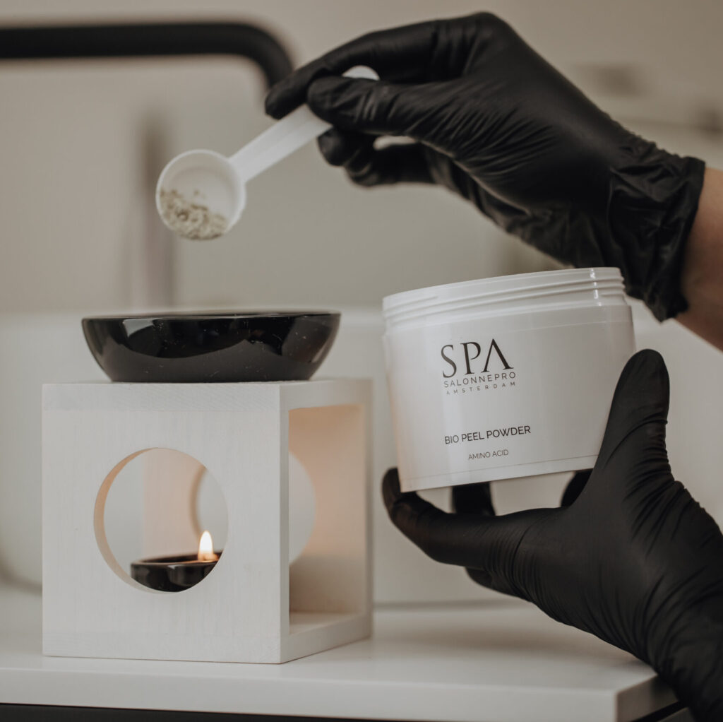De bio peel is een groene kruidenpeeling op basis van verschillende kruiden, zeewier, algen, plant- en fruit extracten die op de huid aangebracht wordt. Deze kruiden en maritieme extracten zetten de huid aan tot regeneratie, waardoor de huid zichzelf van binnenuit gaat herstellen. Door middel van een massage worden de heilzame stoffen uit de kruidenmix optimaal door de huid opgenomen. De Bio Peel is sterk ontgiftend en polijst op zachte en natuurlijke wijze de huid waardoor deze zeer zacht en glad wordt. De huid krijgt een perfecte GLOW en ziet er als herboren uit.